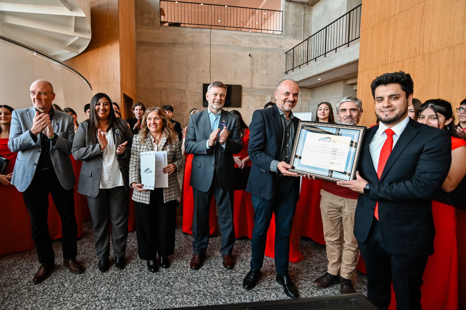 Al Coro Juvenil Mixto dirigido por el Profesor Emilio Chavesta, por la Concejala Sandra Trigo con la presencia del Vice Intendente Javier Pretto