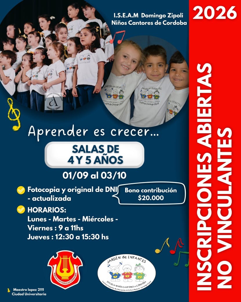 El Instituto Superior de Educación Artístico Musical "DOMINGO ZIPOLI", Escuela de Niños cantores de Córdoba, es la única Institución Coral de Argentina y de Sudamérica, que cuenta con todos los niveles Inicial, Primario, Secundario y Superior.